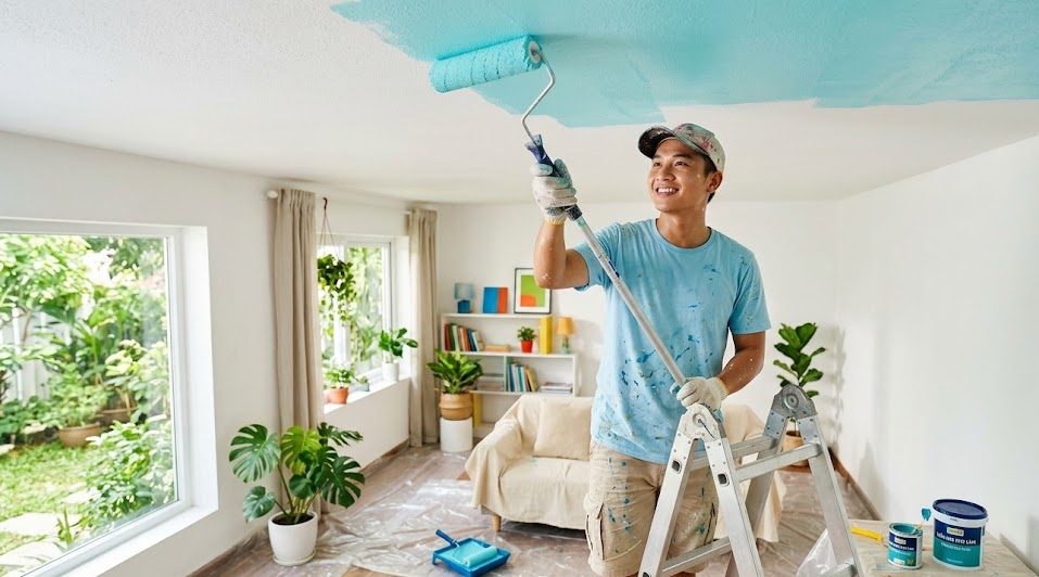 Một trong những bước quan trọng quyết định độ bền của lớp sơn là xử lý bề mặt trần nhà. Trước khi tiến hành sơn, cần kiểm tra xem trần có bị nứt, bong tróc hoặc ẩm mốc hay không.