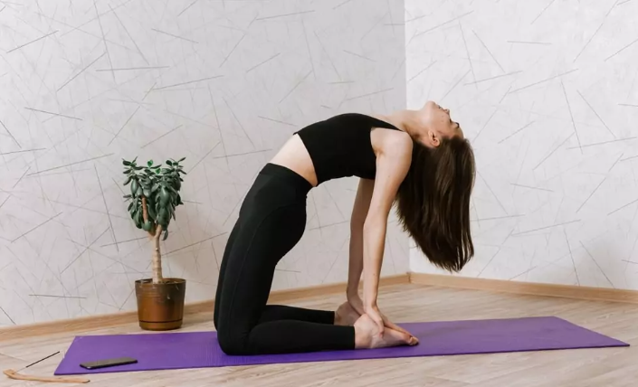 Đây là một tư thế yoga uốn lưng, trong đó người tập quỳ trên gối, ngả người ra sau và cố gắng chạm tay vào gót chân. Tư thế lạc đà giúp mở rộng ngực và kéo giãn cột sống, nhưng nếu người tập ngửa cổ quá sâu hoặc không siết cơ bụng đúng cách, có thể gây đau lưng dưới hoặc căng cơ cổ. Những người có tiền sử đau thắt lưng nên tập tư thế này dưới sự hướng dẫn chặt chẽ.