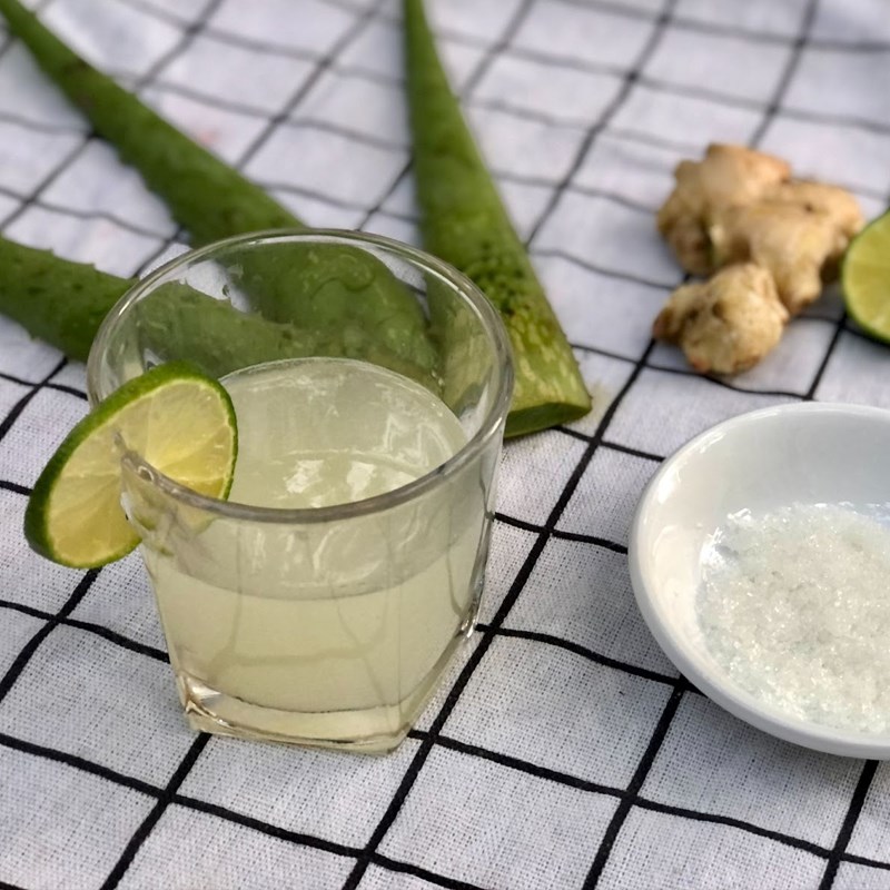 Trộn nước ép lô hội với nước ấm, thêm vài lá bạc hà và một chút muối đen, khuấy đều và uống sau bữa trưa để hỗ trợ tiêu hóa và làm dịu cơ thể.