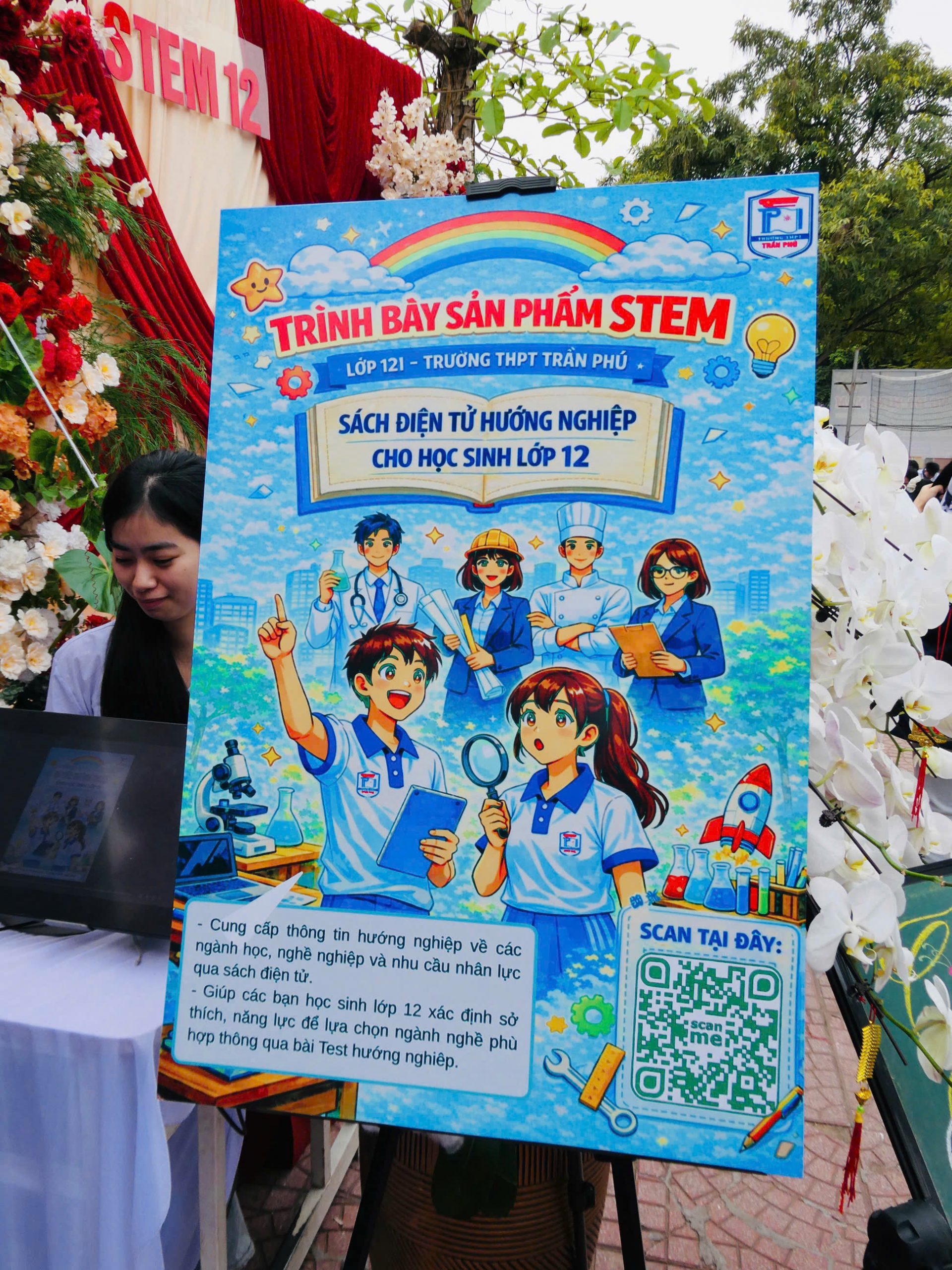 Đặc biệt, khu vực trải nghiệm STEM đã thu hút sự quan tâm lớn với nhiều sản phẩm khoa học do học sinh tự nghiên cứu và chế tạo. Việc trực tiếp thuyết minh, trình bày ý tưởng và ứng dụng của sản phẩm giúp các em rèn luyện tư duy logic, kỹ năng giao tiếp và khả năng thích ứng với yêu cầu của thời đại số.