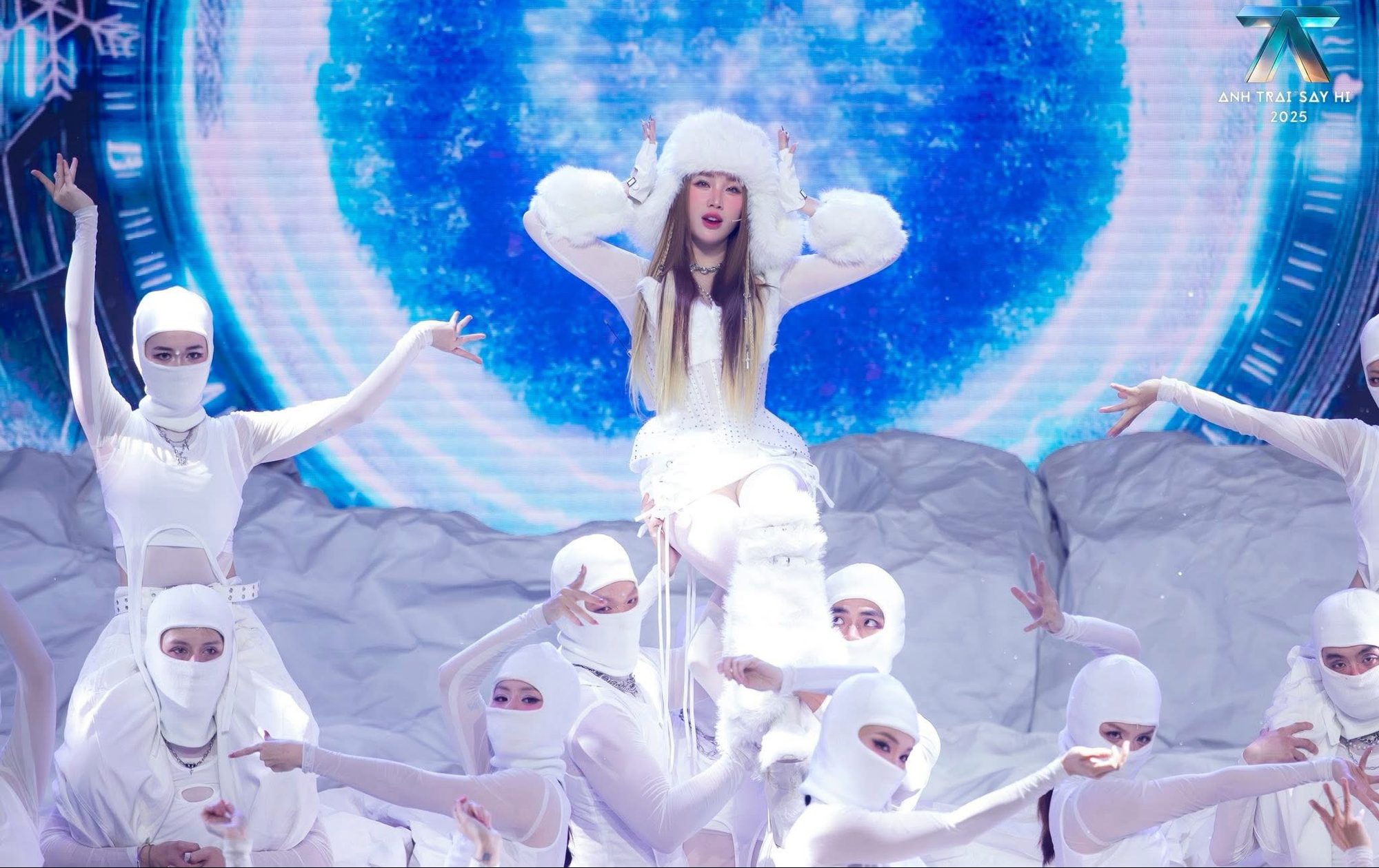 Giữa sân khấu ngập tuyết trắng của Anh Trai Say Hi 2025, Bảo Thy khiến khán giả ngỡ ngàng với vẻ đẹp rực rỡ, makeup ánh bạc và phong cách Y2K đầy hoài niệm. Màn “giã đông” của nữ ca sĩ chứng minh đẳng cấp nhan sắc và thần thái “nữ hoàng Vpop” một thời.