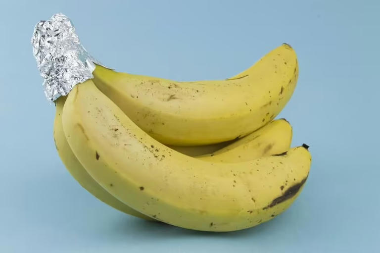 Bọc phần trên của buồng chuối bằng giấy bạc giúp giữ lại một phần ethylene, ngăn không cho nó thoát ra ngoài không khí và tiếp xúc với quả chuối. Việc này làm chậm quá trình thâm đen và giúp bạn có thêm thời gian thưởng thức loại quả này.